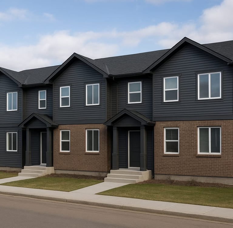 A multi-floor home that shares one or two walls with neighboring units but has its own entrance. Offers a balance between affordability and space.